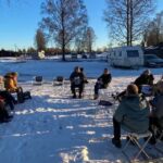 Wir sind nun in der Fylke Innlandet unterwegs. Eine kurze Etappe führt uns auf der überwiegend vierspurigen E6 in die Hauptstadt Norwegens. Bei Temperaturen über 0 °C und herrlichem Sonnenschein hat sich der Winter wohl doch in die rauen Berge zurückgezogen. Entlang des Mjøsa-Sees beginnt unsere Fahrt. Den See überqueren wir bei Minnesund am südlichen Ende auf einer spektakulären Brücke. Das Umland von Oslo präsentiert sich wie das Umland anderer Großstädte in Europa. Der Verkehr auf der Straße und die Gewerbegebäude an ihrem Rand nehmen rapide zu. Auf dem Weg durch die Stadt kann man schon einen ersten Eindruck von der sehr unterschiedlichen Architektur Oslos gewinnen. Dazu werden wir mehr bei der morgigen Stadtbesichtigung erfahren. Unser CP liegt in der Nähe des Holmenkollens, sodass uns ein erster Blick auf den Holmenkollenbakken gewährt wird. Am Abend findet unsere letzte Teilnehmerbesprechung auf dieser Reise statt, die leider wirklich in zwei Tagen endet. Das Treffen wird daher schon zum Erfahrungsaustausch und Resümee genutzt. Aber auch viele Restbestände werden nun endlich geopfert. Die Reiseleitung und andere fleißige Teilnehmer haben einen kleinen Imbiss mit einheimischen Produkten lecker angerichtet. Da greifen alle gern zu, denn damit gibt es eine gute Grundlage für das übliche Überraschungsgetränk, welches unsere vielen schönen Abende versüßte.