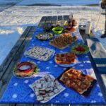 Wir sind nun in der Fylke Innlandet unterwegs. Eine kurze Etappe führt uns auf der überwiegend vierspurigen E6 in die Hauptstadt Norwegens. Bei Temperaturen über 0 °C und herrlichem Sonnenschein hat sich der Winter wohl doch in die rauen Berge zurückgezogen. Entlang des Mjøsa-Sees beginnt unsere Fahrt. Den See überqueren wir bei Minnesund am südlichen Ende auf einer spektakulären Brücke. Das Umland von Oslo präsentiert sich wie das Umland anderer Großstädte in Europa. Der Verkehr auf der Straße und die Gewerbegebäude an ihrem Rand nehmen rapide zu. Auf dem Weg durch die Stadt kann man schon einen ersten Eindruck von der sehr unterschiedlichen Architektur Oslos gewinnen. Dazu werden wir mehr bei der morgigen Stadtbesichtigung erfahren. Unser CP liegt in der Nähe des Holmenkollens, sodass uns ein erster Blick auf den Holmenkollenbakken gewährt wird. Am Abend findet unsere letzte Teilnehmerbesprechung auf dieser Reise statt, die leider wirklich in zwei Tagen endet. Das Treffen wird daher schon zum Erfahrungsaustausch und Resümee genutzt. Aber auch viele Restbestände werden nun endlich geopfert. Die Reiseleitung und andere fleißige Teilnehmer haben einen kleinen Imbiss mit einheimischen Produkten lecker angerichtet. Da greifen alle gern zu, denn damit gibt es eine gute Grundlage für das übliche Überraschungsgetränk, welches unsere vielen schönen Abende versüßte.