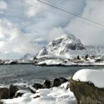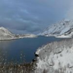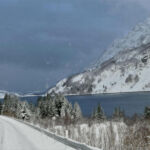 Ausgeruht gehen wir auf die Strecke Richtung Moskenes. Über Nacht ist ordentlich Schnee gefallen und bei schnell wechselndem Wetter genießen wir die herrliche Lofotenlandschaft.