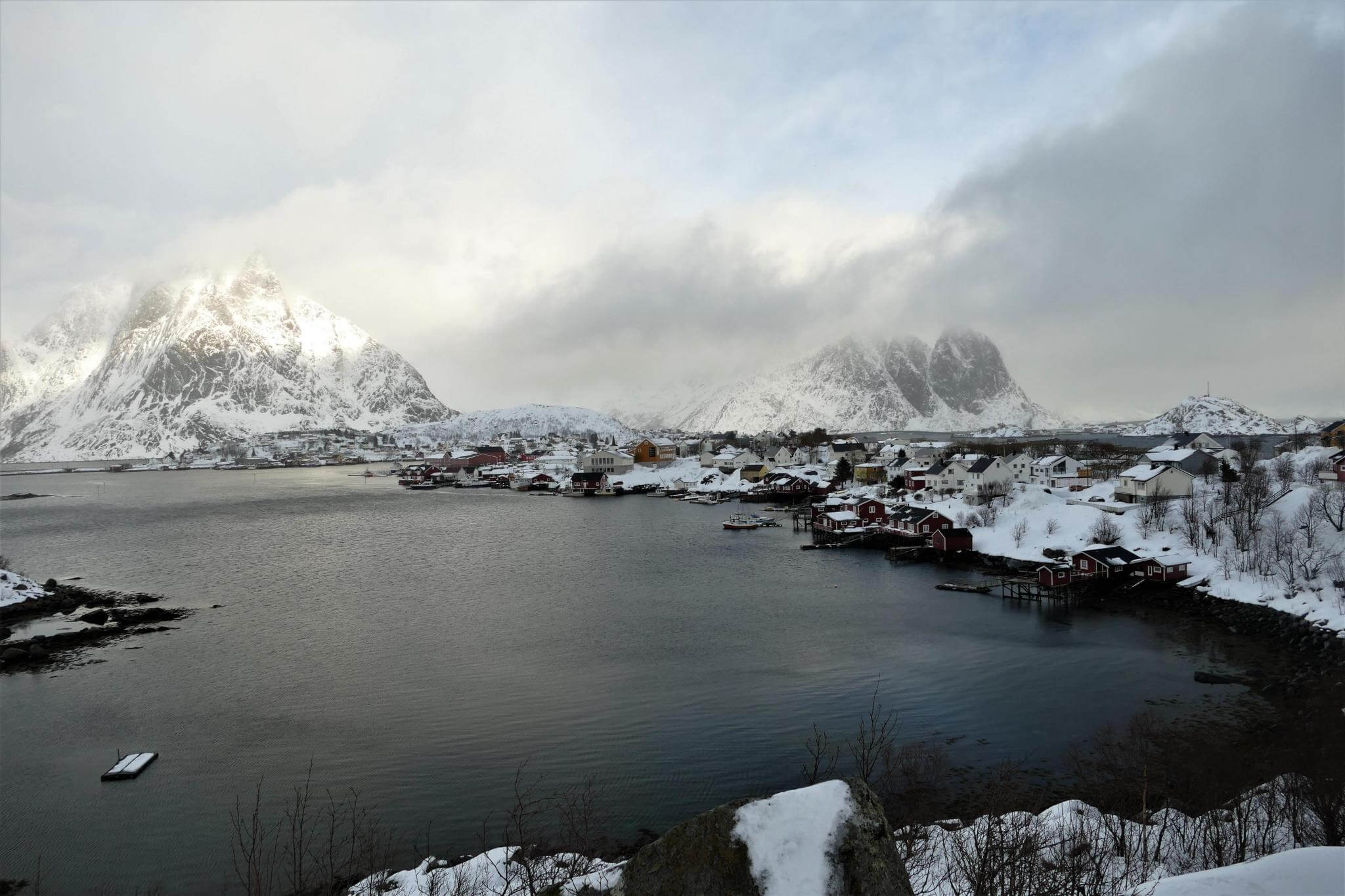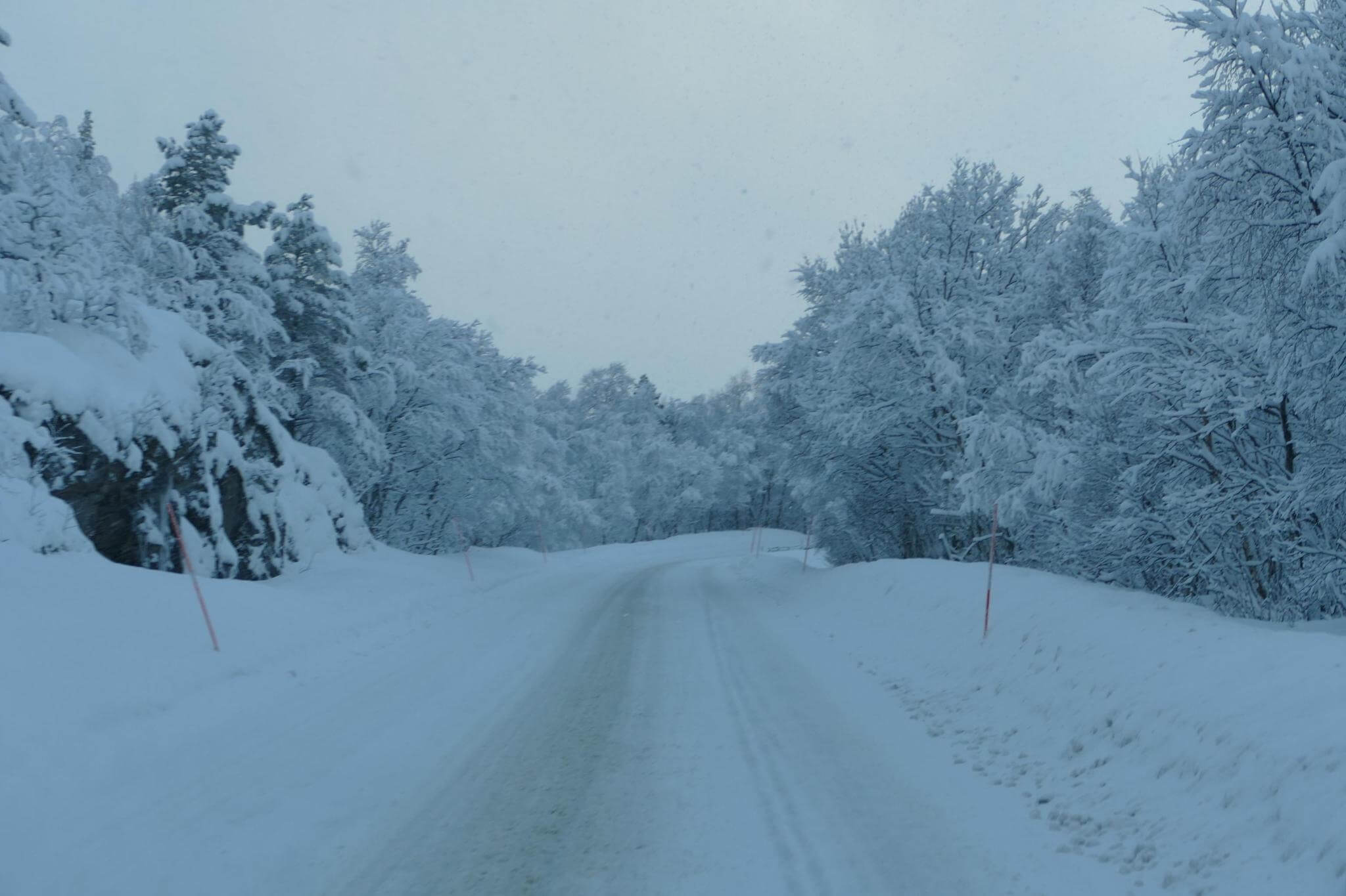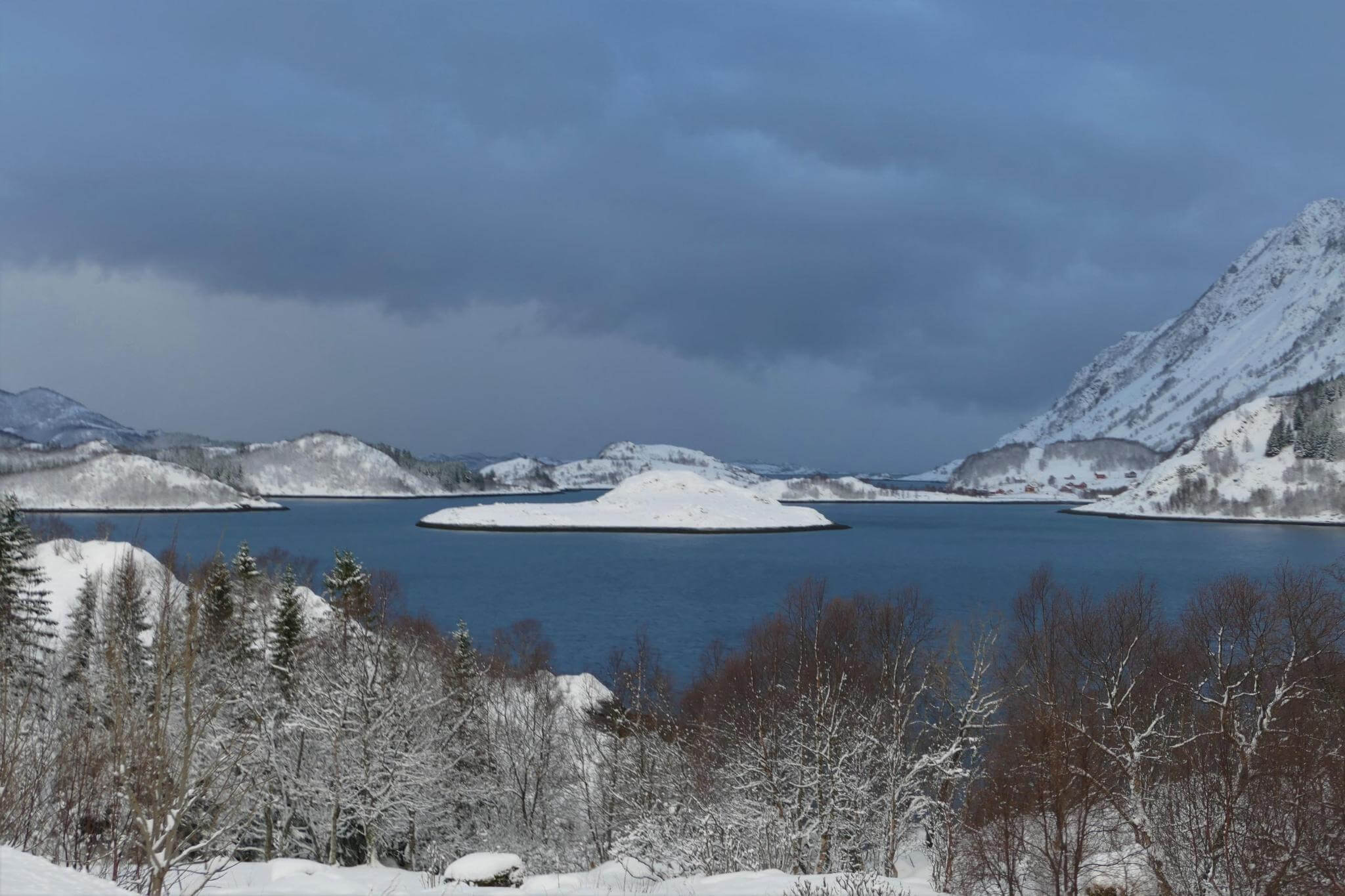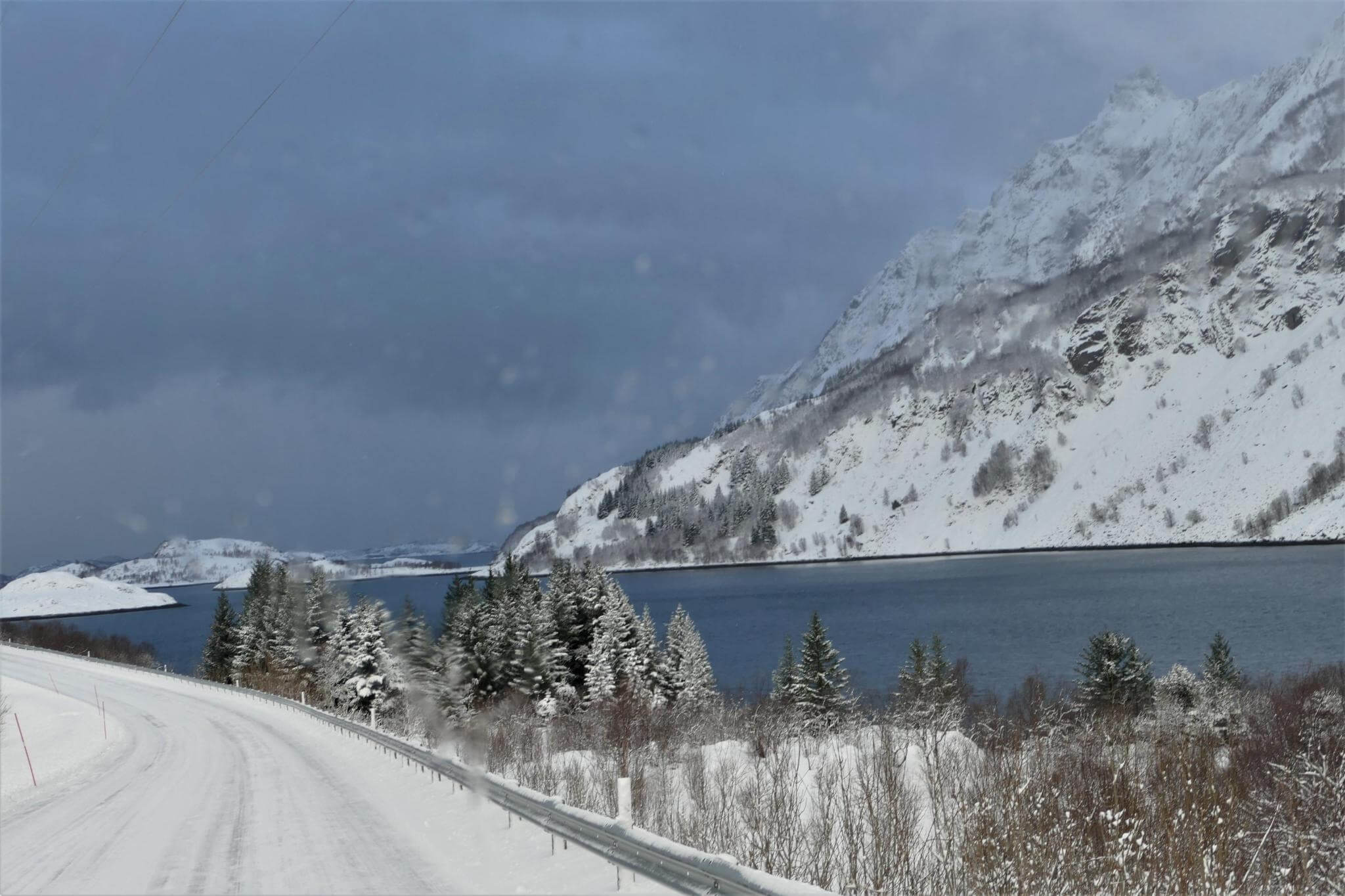 Ausgeruht gehen wir auf die Strecke Richtung Moskenes. Über Nacht ist ordentlich Schnee gefallen und bei schnell wechselndem Wetter genießen wir die herrliche Lofotenlandschaft.