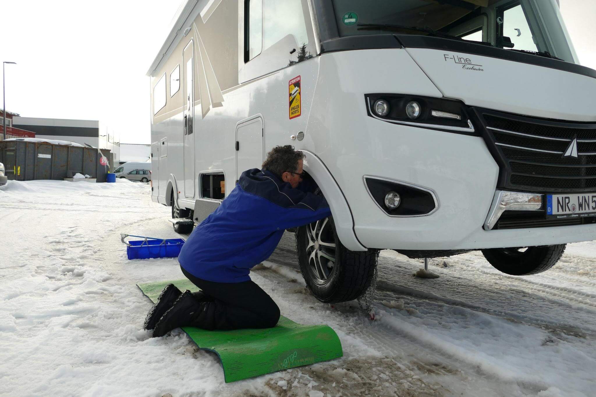 Wir kommen zu unserem Camp in Moskenes, es gibt einen Anstieg zu bewältigen und das geht heute nur mit Ketten.