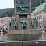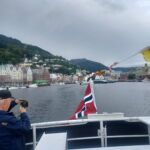 Schon um 8 Uhr holt uns der Bus ab, das muss so früh sein, denn heute ist ein umfangreiches Programm zu bewältigen. Als Erstes steht eine einstündige Bootsfahrt auf dem Programm, bei der wir Bergen und seinen Hafen vom Wasser aus kennenlernen. Danach geht es fußläufig für zwei Stunden durch die Stadt, dabei fallen besonders die alten Handelshäuser von Bryggen auf, von denen aus früher hanseatische Kaufleute Handel in Nordeuropa trieben. In der anschließenden Freizeit konnte man dann frischen Fisch im Hafen oder einen Kaffee zu sich nehmen.