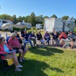 So sitzen wir noch lange in fröhlicher Runde beisammen, bis die Sonne hinter den Baumwipfeln verschwindet.