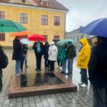 Bald beginnt der Gottesdienst und wir müssen raus in den Regen, der uns während des Stadtrundganges kräftig begleitet.