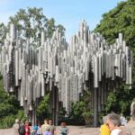 Wir kommen zum Denkmal von Jean Sibelius, ein berühmter Komponist. Es ist eine sehr abstrakte Stahlskulptur.