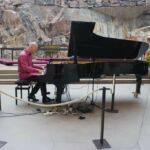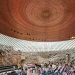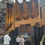 Danach erreichen wir eine der Hauptsehenswürdigkeiten von Helsinki: die Felsenkirche, erbaut 1961–1969 und aus dem Granit herausgesprengt. Die Wände sind unbearbeitet und zeigen noch die Bohrlöcher für den Sprengstoff. Wegen der sehr guten Akustik finden hier viele Konzerte statt. Beeindruckend!