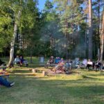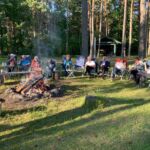 Schließlich erreichen wir unseren ruhigen gepflegten Campingplatz in einem schönen Kiefernwald unweit der Insel Saaremaa. Wir sind fast die einzigen Gäste. Nachdem wir das komplizierte Prozedere der Mauterhebung in Polen besprochen haben, treffen wir uns alle abends am wärmenden Lagerfeuer und lassen den Tag gemütlich ausklingen.