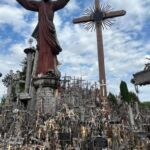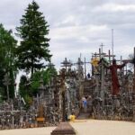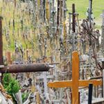 Wir verlassen die Kurische Nehrung auf dem gleichen Weg, wie wir gekommen sind, also in nördlicher Richtung nach Klaipeda/Memel. Die Fahrt in Richtung Süden nach Kaliningrad/Königsberg ist schon seit Jahren nicht mehr möglich, da Russland keine Einreise zulässt. Wer möchte, kann jetzt noch einmal in Juodkrante die Skulpturen auf dem Hexenberg anzuschauen. Unser heutiges Ziel ist ein kleiner Campingplatz bei Siauliai/Schaulen. Kurz zuvor besichtigen wir den „Berg der Kreuze“. Man kann diesen Ort als Nationalheiligtum Litauens bezeichnen. Es war ein Ort des stillen Widerstandes gegen die sowjetische Besatzung. Auf und um einen Hügel befinden sich Abertausende Kreuze aller Art – von ganz klein bis meterhoch, von Holz bis Metall – und stündlich werden es mehr, denn der Ort wird stark besucht.