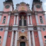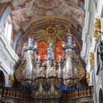 Heute fahren wir mit dem Bus durch die Masuren. Die Hügel- und Seenlandschaft der Masuren ist aus der Eiszeit entstanden. Die Hügel sind aus Grund- und Seitenmoränen entstanden. Die Seen, sogenannte flußähnliche Rinnenseen, sind bis zu 50 m tief. Davon gibt es 3.000 mit einer Fläche von mehr als 1 ha und unzählige kleinere. Ab 1525 waren die Masuren protestantisch, jetzt mehrheitlich katholisch, hingegen spielt die Glaubensrichtung bei der jüngeren Generation keine große Rolle mehr. Erst geht es zur Wallfahrtskirche Świeta Lipka, bei uns besser bekannt mit dem Namen Heiligelinde. Die 300 Jahre alte Kirche beeindruckt durch ihre reich verzierte Fassade und ihre gewaltige Orgel. Auf der Reise haben wir schon viele große Orgeln gesehen, aber diese hier ist wirklich das Highlight! Wir können den Klang der Orgel bei einem kleinen Konzert bewundern. Zu der Musik bewegen sich die goldenen Figuren auf der Orgel.