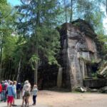 Weniger erbaulich, sondern eher bedrückend ist unser nächstes Ziel: die imposanten Überreste der berühmt-berüchtigten Wolfsschanze, dem Führerhauptquartier im II. Weltkrieg. Die 24 ha große Bunkeranlage mit ihren bis zu 8 m dicken Stahlbetonwänden sollte von der Wehrmacht bei Anrücken der Roten Armee mit 4 Tonnen Sprengstoff pro Bunker zerstört werden. Dies zeigte kaum Wirkung, so können wir jetzt noch Teile der Anlage besichtigen, in der früher bis zu 4.000 Personen beschäftigt waren. Heute ist übrigens der 20. Juli, der Jahrestag des Hitlerattentats.