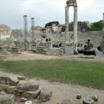 Durch den „Garten“ mit der Büste von Van Gogh kommen wir zum römischen Theater, welches dem Schauspiel und der Musik gewidmet war. Die meisten Akteure waren Männer, die zum großen Teil weibliche Rollen spielten.