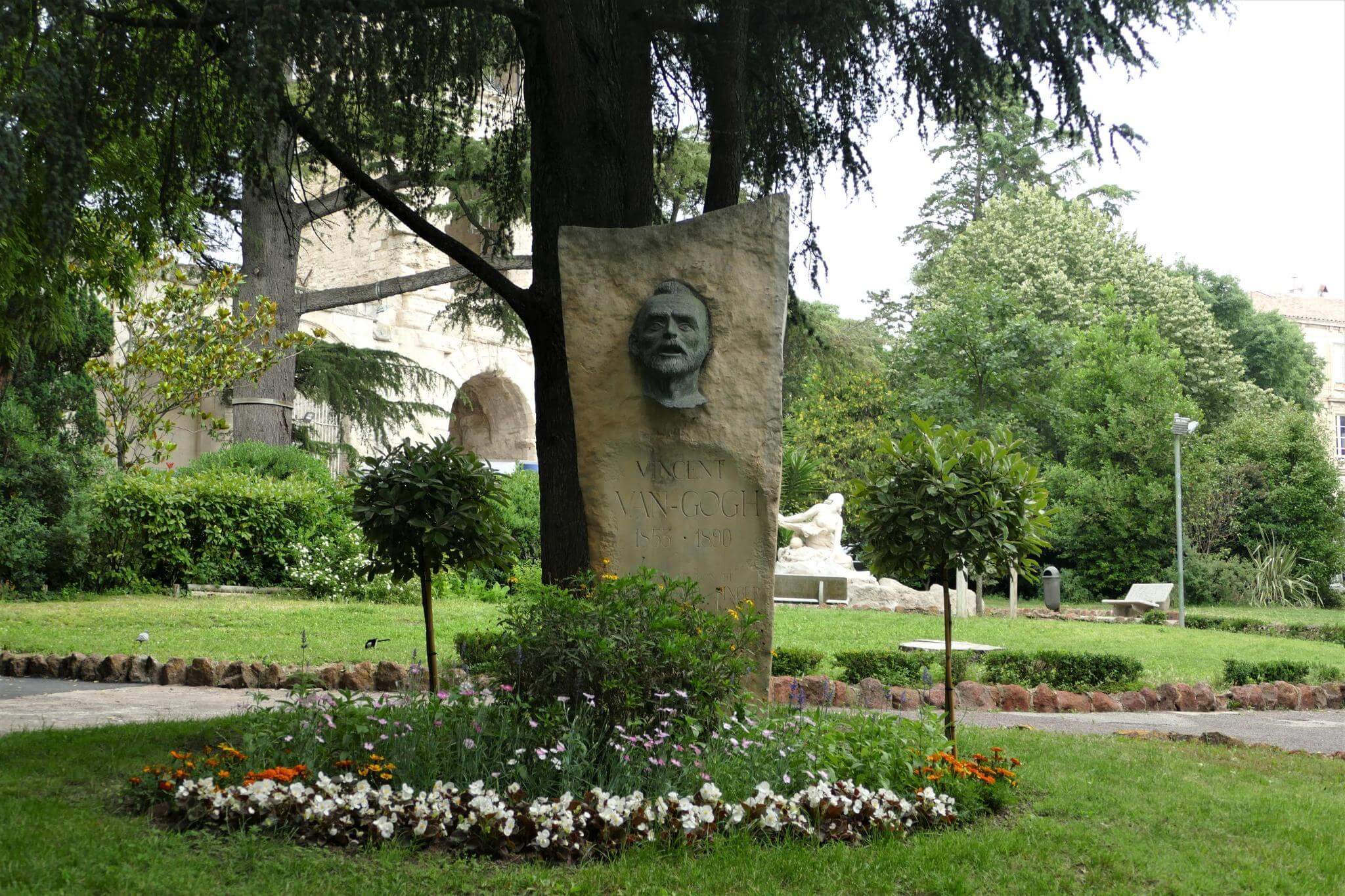 Der erste Krankenhausaufenthalt Van Gogh’s in Arles ergab sich, als er sich das linke Ohr abschnitt, er galt als Schizophrene. Dagegen spricht, dass seine überlieferten Briefe und Bilder, die aus Erinnerungen resultierten, von einer schizophrenen Person nicht in der Form hätten angefertigt werden können. Der Garten im Hof des Krankenhauses wurde nach seinem Bild, nach seinen Vorstellungen gestaltet.
