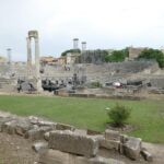 Durch den „Garten“ mit der Büste von Van Gogh kommen wir zum römischen Theater, welches dem Schauspiel und der Musik gewidmet war. Die meisten Akteure waren Männer, die zum großen Teil weibliche Rollen spielten.
