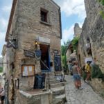 Durch enge Gassen geht es bis hoch zur Burgruine und zum Plateau mit Blick bis hinunter in die Camarque.
