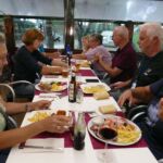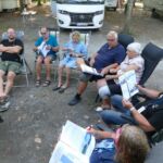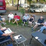 Wir treffen uns wie üblich zu unserer Fahrerbesprechung und genießen ein gemütliches Essen im Camprestaurant.