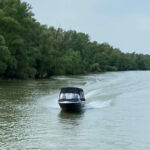 Eine sehr schöne Fahrt ist es. Wir sehen verschiedene Vogelarten und immer wieder kommen uns Boote entgegen oder kleinere, schnellere Boote überholen uns. Wir genießen die Fahrt sehr. Ruhig, die Welt zieht vorüber, das Wetter angenehm – herrlich! Zum Mittagessen machen wir Halt.