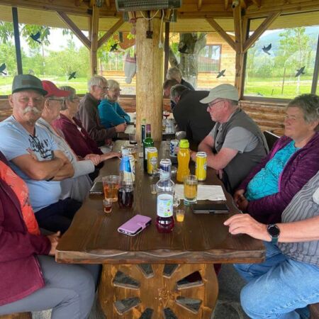 Schnell verpacken wir mit geübten Handgriffen Tische und Stühle und ziehen uns in die Wohnmobile zurück. Doch ein findiger Kopf entdeckt die Pavillons und einige setzen sich hinein und grillen dort. Gemütlich ist’s und später heizen wir sogar mit einem kleinen Kaminfeuer.