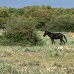 Nach einer kurzen Verschnaufpause wartet schon unser Bus. Wir fahren in die Giara di Gesturi, eine 550 üNN gelegene Basalthochfläche, 12 km lang und 5 km breit. Die vielen Vulkankegel in der Landschaft zeugen noch vom vulkanischen Ursprung dieser Gegend. Unser Parkranger, Roberto, erwartet uns im Naturpark, in dem noch die einzigen Wildpferde Sardiniens, die Giara-Pferde, zu sehen sind. Und tatsächlich – wir haben Glück und können ein Tier dieser einzigartigen Pferderasse -aus gebührender Entfernung- beobachten.