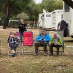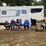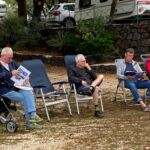 Am Abend wird das Wetter etwas versöhnlicher, sodass wir unsere Besprechung im Freien abhalten können, bis uns gegen 9 Uhr der einsetzende Nieselregen in die Wohnmobile zwingt.