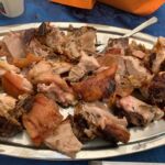 Gleich nach dem Frühstück holt uns der Bus ab. Wir fahren in Richtung der Barbagia beziehungsweise des Supramonte und überqueren wieder den Cedrino Stausee. Er dient der Bewässerung für Landwirtschaft und Schafzucht. Unser erstes Ziel ist die größte bisher bekannte Nuraghensiedlung Serra Orrios, welche zirka 1.500 vor Christi entstand. Als Besonderheit gelten die beiden rechteckigen Megarontempel, die auf Kontakte zwischen Nuraghier und Griechen schließen lassen. Wir erfahren vieles über das Leben der damaligen Bewohner. Manches gibt aber auch heute noch Rätsel auf. Von einst 20.000 Nuraghen sind auf der ganzen Insel noch 8.000 -großteils als Ruinen- erhalten.