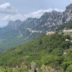 Die heutige Fahrstrecke führt uns erst einmal stetig bergan. In Serpentinen, durch den uns bereits bekannten Tunnel und dann weiter Richtung Süden. Auch hier schlängelt sich die Straße mäßig, aber stetig den Berg empor. Wir sind im Supramonte. Der Blick auf die umliegenden Gebirge ist beeindruckend. Dazwischen schneiden sich tiefe Schluchten ins Gestein.