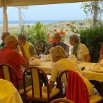 Auch Austern und Miesmuscheln werden bis zur Marktreife gezüchtet. Interessant war es zu erfahren, wie viel Pflege und anstrengende körperliche Handarbeit erforderlich ist, bis das Produkt in den Handel kommt. So viel Neues macht hungrig. So finden wir uns ein paar Kilometer weiter direkt am Strand zu unserem mehrgängigen Fischmenü in einem sehr guten Restaurant ein. Über mehrere Stunden können wir die von der Inhaberfamilie hervorragend zubereiteten Köstlichkeiten aus dem Meer genießen.