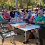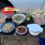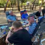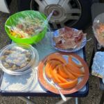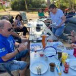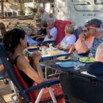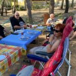 Heute gönnen wir uns einen Ruhetag am Meer. Wir sind jetzt schon über eine Woche unterwegs. Einige putzen ihr Wohnmobil oder sind mit Wäschewaschen beschäftigt, andere machen einen Ausflug mit dem Fahrrad. Wir genießen die Sonne, den feinsandigen Strand und das glasklare Meer, für das Sardinien berühmt ist. Wir können die Seele richtig baumeln lassen. Am Meer haben wir einen weiten Blick vom Cap Ferrato im Norden bis zum Cap Carbonara im Süden. Gegen 15:30 Uhr setzt geschäftiges Treiben ein. Wir veranstalten eine Campertafel. Tisch und Stühle werden zusammengestellt, Grills angeheizt und Salate und Getränke gebracht. Wir genießen die vielen leckeren Sachen und lassen es uns so richtig gut gehen.