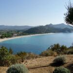 Heute lohnt es sich, nicht allzu spät loszufahren, da wir die schönste Küstenstraße Sardiniens von Villasimius nach Cagliari mit unseren Wohnmobilen befahren wollen. Es bieten sich viele schöne Parkbuchten mit einem weiten Blick auf das in der Morgensonne glänzende tiefblaue Meer. Die Straße schlängelt sich an den abfallenden Bergen entlang durch kleine Ortschaften und führt wieder an schönen Badestränden vorbei. Wir haben einen weiten Blick über den Golf von Cagliari.