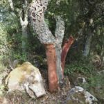 Auch uralte Korkeichen, deren Rinde teils frisch geschält wurde, können wir sehen.