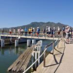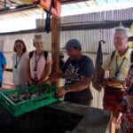 Danach besichtigen wir eine für den hiesigen Küstenbereich typische Fisch- und Muschelzuchtanlage. Uns wird erklärt, wie die noch kleinen Fische in einem trichterförmigen System von Gitter im Brackwasserbereich gefangen und in speziellen Becken gezüchtet werden, bevor sie in den Handel gelangen.