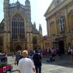 Wieder ein Ruhetag, der Ausschlafen ermöglicht, aber auch eine Liste von Dingen beinhaltet, die erledigt werden müssen. Auf alle Fälle ist der Besuch von Bath mit auf der Liste. Mit einem öffentlichen Bus gelang man von einem P&R Parkplatz in der Nähe unseres Camps ins Zentrum von Bath. Dort ist natürlich ein Ziel, die ehemalige Abteikirche eines Benediktiner-Klosters. Am Nachmittag haben wir unsere dritte und letzte Campertafel. Diesmal bereitet der Reiseleiter einen Kesselgulasch zu. Alle schnippeln Zwiebeln, Paprika, Tomaten usw. und das Ergebnis ist lecker und macht satt. Bei herrlichem Sommerwetter sitzen wir dann noch lange zusammen und fangen schon mal langsam an, Altbestände aus den Womo-kellern zu vernichten.