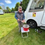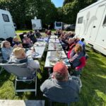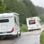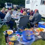 Unsere Fahrt beginnt mit einer traumhaften Straße entlang der Küste – der Coastal Trail West. Beim Straßenbau hat man sich nicht die Mühe gemacht, den Verlauf der Küste zu begradigen. So erlebt man auch im Womo das bergauf und bergab der Küstenlandschaft mit ihrer ganzen Schönheit. Faszinierend ist der Stechginster, der die grünen Berghänge wie Fellstücke überzieht. Oft kommt man durch Fischerdörfchen, die wie Filmkulissen wirken. Wir sind heute extra früh gestartet, weil wir auf dem Whisky Trail einen Halt an der Cardhu Distillery einlegen wollen. Bei einer Führung erfahren wir, wie viel Engagement und Energie jemand aufbringen musste, der vor hundert Jahren in damals steuerlich schweren Zeiten Whisky brennen wollte. Heute ist Cardhu eine Marke, die bei Whiskykennern beliebt und ein Bestandteil des Johnnie Walkers ist. Danach war Schloss Ballindalloch unser Ziel. Am Nachmittag startete unsere erste Campertafel. Nach dem Genuss leckerer schottischer Bratwürste und jeder Menge Salate, die von den Reiseteilnehmerinnen und Hansi (toller Obstsalat) mit Liebe zubereitet worden waren, fand mit einem guten Cardhu-Whisky der Abend noch lange keinen Abschluss. Am Lagerfeuer wurden noch viele Gespräche geführt und das eine oder andere Tröpfchen genossen.