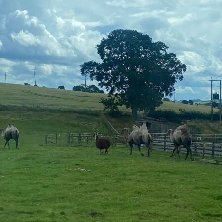 Einige machen Pause bei einem Farm-Shop, der an der Strecke liegt. Hier gibts neben vielen Köstlichkeiten auch Kamele.