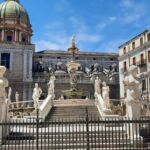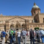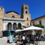 Heute holte uns der Bus leider mit Verspätung ab, denn in Palermo herrschte Verkehrschaos. Unser Führer Gino musste somit umso länger an der Piazza Independenza auf uns warten. Als Erstes galt es das Stadttor und das Parlamentsgebäude zu bewundern, während Gino uns in Palermos Geschichte einführte, die eng mit den Staufern verbunden ist. Weiter ging es zur Kathedrale, die mehrmals umgebaut wurde. Dort sind auch die Gräber der ehemaligen Herrscher zu finden. Dann tauchten wir in die Altstadt von Palermo ein und kamen zum Marktviertel, wo es allerhand zum Probieren und quasi alles zu kaufen gibt. Es folgten die drei wichtigsten Plätze der beeindruckenden Stadt, in der das Leben pulsiert. Anschließend machte ein großer Teil der Gruppe mit Gino noch einen Abstecher in den neueren Stadtteil, bevor die Führung am Opernhaus endete. Unsere Pause hatten wir uns redlich verdient. Danach stiegen wir wieder in den Bus, der uns nach Monreale brachte, wo wir den Königsdom zu besichtigten, der 6.300 Quadratmeter, mit Gold überzogene Mosaike aufzuweisen hat. Wir waren erschlagen von so viel Prunk. Anschließend schauten wir uns dann noch den angrenzenden Kreuzgang an, der auch besonders prachtvoll ist. Dann ging es zurück zum Campingplatz. Abends lud dann Gaby anlässlich ihres Geburtstages zu einem Glas Prosecco ein und nach der Fahrerbesprechung ging es zum opulenten Fischessen im benachbarten Restaurant. Alle waren von der Vielzahl der Vorspeisen, den Pastagängen und dem Schwertfisch begeistert. Ein schöner Abschluss für einen schönen Tag.