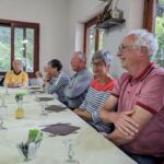 Morgens hatte es zu regnen begonnen, während Reiseleiter Michael das bestellte, noch warme Brot abholte und für die Teilnehmer bereitstellte. Nach einem ausgiebigen Frühstück verkrochen wir uns in unseren Wohnmobilen und erholten uns von der anstrengenden Reise. Einige trotzten dem Regen und machten einen Abstecher nach Finale, um dort einzukaufen oder einen Kaffee zu trinken. Abends war dann nach der letzten Fahrerbesprechung für den kommenden Tag, bei der Johann ein Fass Bier als Aperitif spendete, ein Pizza- und Salatessen angesagt. Sabine bedankte sich bei Reiseleiter Michael im Namen der Gruppe und übergab ihm das Präsent der Gruppe in einem von Marianne getöpferten Sparschwein, wofür sich dieser ganz herzlich bedankte. Dann ließ die Reise kurz Revue passieren und bedankte sich bei den Teilnehmern für ihre Unterstützung und Disziplin.
