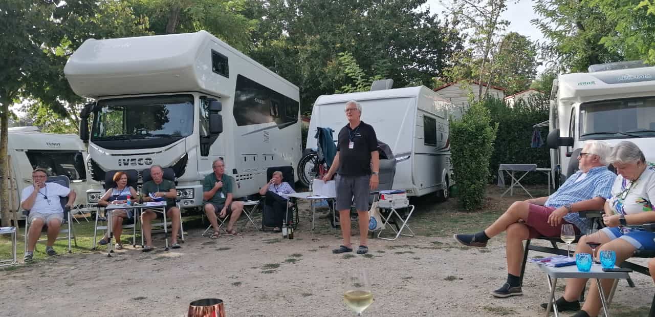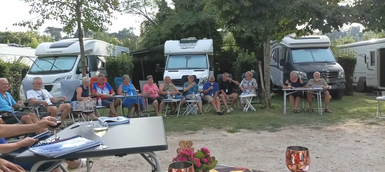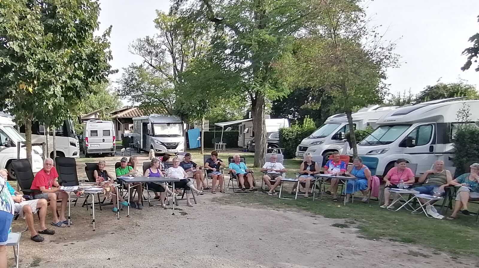 Bereits am Samstagmittag war bei meinem Eintreffen über die Hälfte der Teilnehmer schon auf unserem schönen Campingplatz in Rom. Am Sonntag kamen dann bis Mittag die übrigen Teilnehmer. Das gute Sommerwetter nutzten viele zu einer Abkühlung im Pool des Campingplatzes. Zur Begrüßung gab es um 17 Uhr einen Schluck Wein, Navis und Geräte für die Führungen wurden ausgeteilt und alles Wichtige für die Tour von Tourleiter Michael erklärt. Alle 33 Teilnehmer sind gut drauf und freuen sich auf die Tour mit ihren vielen Eindrücken. Den Abschluss des Tages und ein weiteres Kennenlernen untereinander genossen wir bei einem wohlschmeckenden 4-Gang-Menü im Restaurant unseres Campingplatzes.