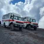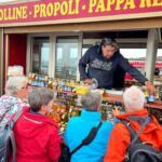 Um 9 Uhr holten uns bei gutem Wetter unser Busfahrer Gabriele und unsere Führerin Maria Lina am Campingplatz ab. Der Bus brachte uns in einer starken Stunde mit einem Fotostop unterwegs zur Talstation der Bergbahn, die auf den Ätna auf 2.500 Meter Höhe führt. Von dort aus ging es mit Unimogs weitere 250 Höhenmeter hinauf. Oben wartete schon ein Führer auf uns. Mit ihm stiegen wir auf 2.900 Meter an einen Kraterrand und Maria Lina übersetzte uns seine Ausführungen. Auf unserem Weg sahen wir weitere kleine Krater. Nach der Rückkehr an die Bergstation lösten wir die Gutscheine des Campingplatzes für Sandwich oder Pizza mit Getränk und Café ein. An der Talstation kauften sich noch einige den guten Honig vom Ätna, den es in vielen Geschmacksrichtungen gibt, bevor uns der Bus zurück zum Campingplatz brachte. Alle waren sich darüber einig, dass der Ätnaausflug bei gutem Wetter, aber leider wolkigem Himmel erlebnisreich und schön war. Am Nachmittag begann es dann zu regnen und es hieß ein wenig auszuruhen. Abends nutzte ein Teil der Gruppe wiederum das gute Restaurant des Campingplatzes.