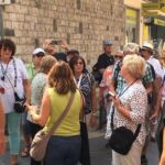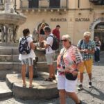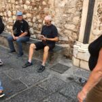 Heute starteten wir um 8.30 Uhr mit dem Bus in Begleitung unserer Reiseleiterin vor Ort Maria Lina entlang der Küste zu einem Rundgang durch Catania, der zweitgrößten Stadt Siziliens. Der Weg führte über einen Flohmarkt direkt ins Stadtinnere mit seinen großen Plätzen, die so angelegt wurden, dass die Menschen sich bei eventuellen Erdbeben in der Mitte versammeln können. Wir besichtigten die Abteikirche Badia di Sant‘Agata, mit dem Grabmal des Komponisten Vincenzo Bellini, und das Grabmal des Kardinal-Erzbischofs Giuseppe Benedetto Dusmets, dessen mumifizierten sterblichen Überreste mit bischöflichem Ornat und Totenmaske zu sehen sind. Nach einem Rundgang über den samstäglichen Fischmarkt besonderen Ausmaßes betrachteten wir noch den drittgrößten Klosterkomplex in Europa, Monastero dei Benedittini di S. Nicolò l’ Arena, mit den Erläuterungen Maria Linas verständlich gemacht. Nach der Mittagspause ging es dann weiter nach Taormina, eine der meistbesuchten Städte Siziliens, hier war aufgrund der vielen Kreuzfahrttouristen bei strahlendem Sonnenschein „der Bär“ los. Über einen zwanzigminütigen Spaziergang durch die Verkaufsmeile gelangten wir zum Teatro Greco, ursprünglich ein klassisches griechisches Theater, das die Römer im 2. Jh. v. Chr. als Theater für Gladiatorenkämpfe nutzten und das heute noch für Open-Air-Konzerte verwendet wird, der Blick von dort auf den Ätna und über das Meer ist atemberaubend schön und wie viele sagen, vor allem nachts.