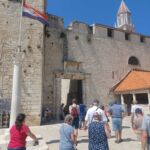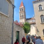 Schon um 9 Uhr ging es heute in Richtung Split und Trogir. Unsere Fahrt war etwas zäh, da wir durch den Berufsverkehr vor Split mussten. Am Busbahnhof trafen wir unseren Guide, der uns mit großem Engagement durch Split führte und alle wichtigen Sehenswürdigkeiten zeigte. Dabei war auch der älteste Palast, in dem schon Diokletian residierte. Zum Mittagessen ging es weiter nach Trogir, wo wir mit einem üppigen, sehr leckeren Menü verwöhnt wurden. Etwas träge erhoben wir uns, um die Schätze des Weltkulturerbes noch zu bestaunen. Zurück am Campingplatz kühlen sich einige im Meer ab, um 18 Uhr wieder zur Fahrerbesprechung fit zu sein.