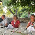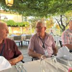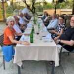Da der Weg von Deutschland nach Slowenien doch Zeit erfordert, sind einige schon ein paar Tage eher auf unserem CP angereist, um vor dem offiziellen Start der Tour bereits das Urlaubsfeeling an der Adria zu genießen und sich von der langen Anreise zu erholen. Andere bewältigten als letzte Etappe die Anreise über mautfreie Straßen von Italien oder von Österreich über den Karawanketunnel. Am Nachmittag waren alle vor Ort, sodass wir pünktlich mit dem ersten Kennenlernen und dem Austausch unserer Erwartungen und Wünsche für diese Reise beginnen konnten. In der ersten Teilnehmerberatung gab es dann vom Reiseleiter noch einige Hinweise und wir verständigten uns, wie wir unsere gemeinsame Reise so gestalten wollen, dass sie für alle ein unvergessliches Erlebnis wird. Das Kuga-Equipment für die Reise wurde ausgegeben und danach besprachen wir den morgigen Ausflug nach Triest und den ersten Fahrtag der Reise nach Pula. Am Abend trafen sich alle im Restaurant des naheliegenden Hotels, um mit großem Appetit unser Begrüßungsessen zu genießen. Dieses war so vorzüglich, dass von allen ein Lob an die Küche ging. Der Abend mit slowenischen Fischspezialitäten und mit interessanten Gesprächen wurde zu einem wundervollen Starterlebnis unserer Reise.