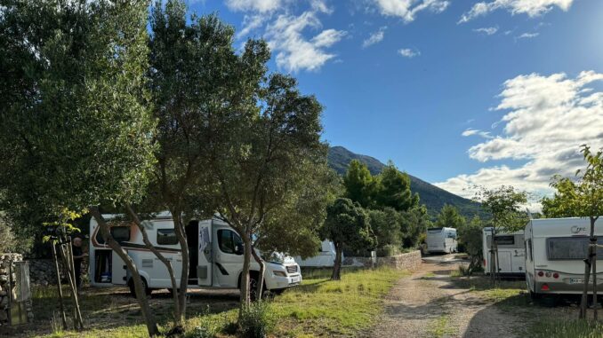 Nach dem gestrigen schönen Abend bietet sich der heutige Ruhetag wirklich zum Ausruhen an, da auch das Wetter schon am frühen Morgen zum Regen übergegangen ist. Am Vortag war leider die Hälfte unserer gemeinsamen Reisezeit vorbei, sodass die Reiseleitung am Vormittag zum Bergfest einlud. Nachdem auch der Regen ein Einsehen hatte, gab es Weißwürste und einen kroatischen Sliwowitz. Trotz der Wehmut über die erlebnisreichen vergangenen Tage stehen uns mit Dubrovnik, Montenegro und Albanien jedoch noch einige weitere tolle Reiseziele bevor. Der restliche Tag verlief relaxt. Der mögliche Regen verhinderte große Aktivitäten außerhalb des Womos. Deshalb entschieden sich die meisten, diesen Tag im und am Womo zu verbringen. Arbeit gibt es ja immer genügend. Aber auch mal Füße und Seele baumeln zu lassen, ist eine gute Idee.