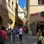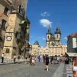 Bei tollem Sommerwetter starten wir pünktlich neun Uhr mit Dagmar, unserem Guide für heute und morgen, Richtung Prager Altstadt. Während der Fahrt erfahren wir von ihr viele interessante Dinge zu Historie und aktuellen Entwicklungen Prags. Direkt an der Moldau, dem längsten Fluss Tschechiens, verlassen wir den Bus und beginnen mit unserem Rundgang durch die Prager Altstadt. Wir sehen verschiedene Fakultäten der Karls Universität. Sie ist die älteste Universität Mitteleuropas und wurde bereits 1348 von Karl IV. gegründet. Gemeinsam überqueren wir die Karlsbrücke, die zweitälteste Steinbrücke Tschechiens (die älteste werden wir im Verlauf unserer Reise noch sehen) bis zur Statue Johannes Nepomuks. Seit 1357 verbindet diese Brücke die Prager Kleinseite mit der Altstadt. Wir kommen vorbei am Neuen Rathaus, dem Sitz der Stadtverwaltung und des Bürgermeisters, dem Clementinum einem umfangreichen Barockgebäude mit schöner Kirche und tschechischer Nationalbibliothek. Vorbei an tollen Bürgerhäusern und dem Denkmal des bekannten Reformators Jan Hus erreichen wir das Alte Rathaus mit seiner berühmten astronomischen Uhr, welche Dagmar uns in allen Details ausführlich erklärt. Leider kamen wir zeitlich etwas ungünstig am Rathaus an, sodass wir den Rundgang der berühmten zwölf Apostel nicht verfolgen konnten. Weiter geht es vorbei am Marktplatz, dessen Marktbuden schon seit dem Jahr 1232 betrieben werden, bis zum Wenzelsplatz, welcher sich schon in der Prager Neustadt befindet. Am Ende des Platzes sehen wir das Nationalmuseum, das markanteste Gebäude des ganzen Platzes. Wir machen einen kurzen Abstecher in den ehemaligen Klostergarten des daneben befindlichen Franziskanerklosters und besichtigen die dazugehörige Kirche, welche nie vollendet wurde, sie besitzt keinen Kirchturm. Nun führt uns unser Weg wieder in die Altstadt in das historische Restaurant Staromacek, wo uns ein böhmisches Drei-Gang-Menü erwartet. Nach einem guten Essen steht für alle Freizeit an, die jeder individuell nutzt. Einige gehen mit Dagmar noch auf eine kleine Entdeckungsrunde durch das jüdische Viertel Prags. Um 16 Uhr starten wir mit Emil unserem Busfahrer zurück zum Campingplatz. Alle bestätigten, dass es ein sehr schöner und interessanter Tag war. Am Abend trafen sich dann fast alle Reiseteilnehmer nochmals vor dem Wohnmobil der Reiseleitung zu einer geselligen Runde. Es wurde noch ein langer Abend.