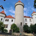 Heute starten wir mitten im Berufsverkehr Richtung Böhmerwald. Für die circa 280 Kilometer haben wir knapp fünf Stunden Fahrzeit veranschlagt. Auf der Strecke gibt es einige Sehenswürdigkeiten, die es zu entdecken gilt. Als Erstes bietet sich ein Abstecher zum Schloss Konopiste an. Es beherbergt eine große Sammlung von Kunst- und Kunsthandwerksgegenständen von der Gotik bis heute. Anlässlich der Olympischen Spiele in Paris hat das Schloss sogar ein Gemälde nach Versailles ausgeliehen. Weiter geht es zum Kloster Milevsko. Es ist das älteste Kloster Südböhmens und stammt aus dem 12. Jahrhundert. Teile des Klosters können besichtigt werden. Wir fahren über den Moldaustausee und machen einen Abstecher zum Schloss Orlik. Früher stand hier eine Burg, die nach einem Brand erst im 19. Jahrhundert zu einem Schloss umgebaut wurde. Es empfiehlt sich eine Schlossbesichtigung oder ein Bummel durch den großen Landschaftspark. Ein paar Kilometer weiter bietet sich ein Abstecher zur Burg Zvikov an. Diese Burg aus dem 13. Jahrhundert kann ebenfalls besichtigt werden. Unser nächstes Ziel ist Pisek, eine Stadt mit ca. 30.000 Einwohnern. Sehenswert ist hier vor allem die Steinbrücke über den Orava-Fluss. Sie wurde in der zweiten Hälfte des 13. Jahrhunderts gebaut und ist die älteste Steinbrücke Tschechiens und eine der ältesten in Europa. Auf der Brücke befinden sich schöne Statuen. Weiter geht es Richtung Böhmerwald. Nach einer Passhöhe von über 1000 m ü NN kommen wir am ältesten Gasthaus des Böhmerwaldes vorbei. Nach weiteren 40 Kilometern Fahrt durch schöne Landschaft erreichen wir unseren Campingplatz in Horni Plana. Er ist wunderschön am Ufer des Lipno-Stausees gelegen und hat einen eigenen Strand. Leider macht gelegentlicher Regen wenig Lust auf Baden. Im Laufe des Nachmittags erreichen alle das Tagesziel und genießen die freie Zeit am See. Erst um 18 Uhr treffen wir uns wieder, um den nächsten Fahrtag zu besprechen. Für den Abend hat die Reiseleitung noch Plätze im Restaurant neben dem Campingplatz reserviert. Die meisten Reiseteilnehmer nutzen dies für ein gemeinsames Abendessen in geselliger Runde.