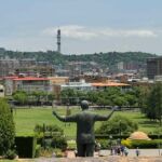 Trotz einiger Streiks in Deutschland sind alle deutschen Tourteilnehmer pünktlich auf dem internationalen Airport O.R. Tambo in Johannesburg angekommen. Auch die Teilnehmer aus der Schweiz gesellten sich pünktlich zur Reisegruppe. Unser Guide für die Stadtführung in Joburg und unser Bus waren ebenfalls pünktlich, sodass wir zur Besichtigung des Stadtzentrums als ersten Programmpunkt aufbrechen konnten. In Johannesburg wird viel seitens der Stadtverwaltung unternommen, um das Negativimage in Bezug auf Sauberkeit und Kriminalität abzulegen. Leider benötigt dieser Kampf einen langen Atem, sind doch die Gewohnheiten der schwarzen Bevölkerung und der vielen illegalen Zuwanderer aus anderen afrikanischen Ländern nicht von heute auf morgen zu verändern. Unserer Guide erzählte uns jedoch, dass es heute schon Touristen gibt, die die Innenstadt mit Hop on – Hop-off Bussen auf eigene Faust erkunden. Wir fahren weiter auf dem Weg nach Soweto vorbei am WM-Stadion von 2010. Dieses Stadion mit seiner interessanten Geschichte auch außerhalb der Fußballweltmeisterschaft 2010 – hier fand die erste Massenkundgebung mit Nelson Mandela nach seiner Freilassung und ebenso die öffentliche Trauerfeier anlässlich seines Todes statt – ist einem traditionellen afrikanischen Trinkgefäß, der Kalebasse, nachempfunden. In Soweto, einem Township, welches ursprünglich für die aus allen Teilen Südafrikas herangeholten Arbeiter für die Goldgewinnung gebaut wurde, sehen wir neben den ursprünglichen alten Gebäuden und vielen Wellblechhütten auch die Versuche der Regierung, anstelle von monetären Sozialleistungen die Armen mit geschenkten Grundstücken und kleinen massiven Häusern zu unterstützen. Nach der Rundfahrt geht es zum Essen zu Mutter Lindi. Neben köstlichen traditionellen Speisen konnten wir auch eine Hütte besichtigen, die von Mutter Lindi liebevoll so nachgestaltet wurde, wie sie ihr Zuhause als Kind erlebt hatte. Der nächste Stopp war auf der Vilakazi Street. Es ist die einzige Straße der Welt, in der zwei Friedensnobelpreisträger wohnten: Nelson Mandela und Erzbischof Desmond Tutu. Dann ging es zu unserem ersten Übernachtungsort, zur Credle Moon Lodge, in deren unmittelbarer Nähe sich die Wiege der Menschheit befindet. Am Abend gab es dann das erste Kennenlernen der Tourteilnehmer untereinander bei einem Diner in unserer Safari-Lodge.