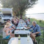 Wir fahren weiter in Richtung Osten. Heute passieren wir die Grenze von Botswana nach Namibia. Wir haben eine kurze Fahrt vor uns, die vor der Grenze noch einmal durch den Chobe N.P. führt. Die Ausreise aus Botswana ist völlig unproblematisch und schnell erledigt. In Namibia sind einige Formulare auszufüllen und eine Straßennutzungsgebühr zu begleichen. Dann sind wir im vierten Land unserer Reise im südlichen Afrika. Katima Mulilo erreichen wir leider gerade zur Schließzeit des Alkoholverkaufes. Es ist Sonnabendnachmittag. Am Wochenende gibt es keinen Alkohol. Das kennen wir ja schon aus skandinavischen Ländern. Problematisch ist nur, dass auch der MTC-Telefonladen keine Lust mehr hat, noch so vielen eine Telefonkarte einzurichten. Wir werden auf Montag vertröstet. Am Abend findet unsere erste Campertafel statt. Alle haben sich viel Mühe gegeben und schmackhafte Gerichte zubereitet. Auch die Steaks und Bratwürste waren lecker. Bei lustigen Geschichten verlief der Abend in einer schönen Atmosphäre. Alle sind sich einig, das war nicht unsere letzte Campertafel auf dieser Reise.