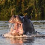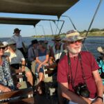 Unser erster Ruhetag ist endlich erreicht. Man kann ausschlafen und den Vormittag gemütlich verbringen oder die üblichen Arbeiten an Ruhetagen – Wäsche waschen, Auto reinigen, Fotos sortieren usw. – erledigen. Am Nachmittag holen uns zwei Boote zu einer Fahrt auf dem Sambesi ab. Wir sehen vor allem Wasservögel, aber auch, wie die Einheimischen den Sonntag am Fluss verbringen. Auf der Rückfahrt findet unser Bootsführer noch eine größere Gruppe von Hippos. Das Ergebnis sind spektakuläre Fotos.