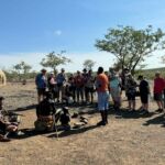 Am Morgen erwarten uns Donkey Carts (Eselkarren). Mit einer rasanten Fahrt geht es zu einem Himba Dorf. Ein englisch sprechender Angehöriger des Himba-Stammes erklärt uns die Lebensweise und Lebensbedingen dieses Volkes. Am Ende erleben wir, wie viel Spaß die Dorfbewohner beim Tanzen haben können. Den Nachmittag verbring jeder auf seine Art, um sich zu erholen. Am Abend treffen wir uns bei einem kleinen Umtrunk, um der Sonne beim Untergang zuzusehen. Danach gibt es ein schmackhaftes Menü im Restaurant des Camps. Dann kommt eine Tanzgruppe, um uns mit namibischen Liedern und Tänzen zu begeistern. Sie zeigen uns auch, dass sie für die internationale Solidarität und Hilfe sehr dankbar sind. Und sie überraschen uns mit der Loreley. Leider geht wieder ein wunderschöner Abend viel zu schnell zu Ende.