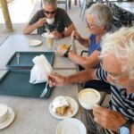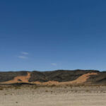 Unser nächstes Ziel ist das Soususvlei, eine Dünenlandschaft ca. 50 Km vom Atlantik entfernt. Wir haben wieder einen großen Anteil der Route auf Schotterpisten zurückgelegt. Mittlerweile verfügen wir aber über Erfahrungen, mit diesen Straßen umzugehen. Drei Reifen geben jedoch auf und müssen getauscht werden. Bei Temperaturen um die 40 Grad C ist das eine schweißtreibende Angelegenheit. Unterwegs gibt es ein kleines Kaffee zum Ausruhen und um Apfelkuchen zu kosten. Auch unser Camp ist eine fahrerische Herausforderung. Im kleinen Maße gibt es auf den Wegen zwischen den Stellplätzen schon mal Sanddünen, aus den man – einmal festgefahren – nur mit fremder Hilfe herauskommt. Am Abend treffen wir uns zur Teilnehmerberatung. Dabei gilt der Glückwunsch von allen unserm Geburtstagskind. Nach der Besprechung, wie wir am morgigen Tag den Sonnenaufgang auf der Düne 45 erleben können, wird Holzkohle angezündet und jeder bereitet seine Mitbringsel zu.