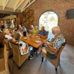 Heute besuchen wir eines der bekanntesten Distrikte in der Provinz Westkap, Stellenbosch. Unseren ersten Stopp legen wir bei der Kellerei KWV ein, die Kooperatiewe Wijnbouwers Vereniging. Diese ehemalige Winzergenossenschaft ist heute eine Aktiengesellschaft. 1918 gegründet, bietet diese Kellerei ihren Besuchern nicht nur ein breites Spektrum an alkoholischen Getränken vom Brandy über Liquöre bis zu guten Weiß- und Rotweinen. Auch die Führung durch die Kellerei mit ihren riesigen Weinfässern, die zum Teil mit dekorativen Holzreliefs versehen sind, ist berauschend. Den nächsten Stopp legen wir bei Anura ein. In der sehr gepflegten Anlage gibt es u. a. auch eine kleine Brauerei und Käserei. Von den ausgezeichneten Produkten können wir uns auch hier bei einer Verkostung überzeugen lassen. Danach geht es zum Lunch in die wacklige Brücke – Rickely Bridge in Frenchhoek, dem Franzoseneck. Die Brücke hat es wahrlich in sich, wegen ihrer geringen Breite. Aber John kommt ohne Schrammen durch und das Essen lohnt die Fahrt. Anschließend besuchen wir die Universitätsstadt Stellenbosch. Die vielen Straßenkaffees stehen uns offen. Und es gibt viel zu sehen und zu kaufen. Im Hotel angekommen, werden zunächst die erworbenen alkoholischen Produkte im Zimmer verstaut. Dann geht es wieder an die Waterfront und abends an die Bar.