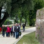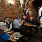 Trotzdem ließ es sich die Mehrzahl der Gruppe nicht nehmen, mit einem kleinen Spaziergang entlang der Nogat, gemeinsam zum schönen Burgrestaurant zu gehen. Der Weg hin und zurück am Wasser entlang, auf einem schön angelegten Fuß- und Radweg, gesäumt durch viel Grün und Bäume, war ein angenehmer Ausgleich für die vielen Stunden im Auto. Im Restaurant angekommen, erwartete uns schon das wunderschöne Gewölbe mit rustikalen Holztischen und nette Bedienungen, die uns zügig mit Getränken versorgten. Die Atmosphäre in diesen besonderen Räumlichkeiten begeistert immer wieder. Schön war, dass alle Gäste mit Freude und guter Laune teilgenommen haben. Das schmackhafte Essen und die lebhaften Gespräche haben uns einen kurzweiligen Abend beschert. Der Reiseleiter nutzte zwischen den Gängen die Zeit, um die Abläufe der nächsten beiden Tage zu kommunizieren.